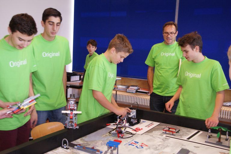 Zehn Teams von Vorarlberger und Tiroler Mittelschulen sowie der HTL Bregenz traten zur “First Lego League” an. Der Elektrotechnik-Bewerb speziell für junge Nachwuchsingenieure wurde zum ersten Mal in Vorarlberg und an der HTL Bregenz ausgetragen. Im Bild das Team der VMS Dornbirn Bergmannstraße. Foto: wkv