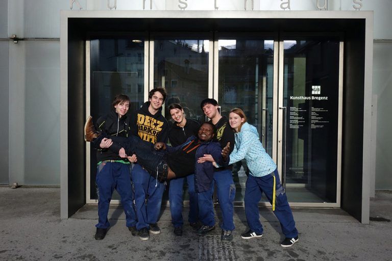 Das Kunsthaus Bregenz bietet zwanzig Lehrlingen der Vorarlberger Kraftwerke AG die Gelegenheit, bei der Realisierung der kommenden Ausstellung „I love you!“ von Pascale Marthine Tayou mitzuwirken und dadurch praktische Erfahrungen in den unterschiedlichsten Bereichen des Ausstellungsaufbaus zu sammeln. Foto: sagmeister