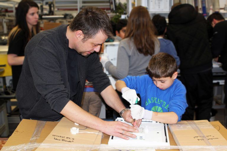 15 Schüler aus dem Caritas Lerncafé haben das Zumtobel-Leuchtenwerk in Dornbirn besucht. Unter Anleitung von Lehrlingen und Mitarbeitern montierten die Neun- bis 14-Jährigen ihre erste Leuchte und erhielten einen Einblick in die Arbeitswelt. Foto: zumtobel