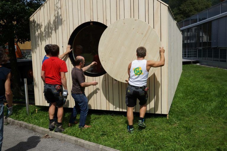 Heute beginnt die Handwerksausstellung in Bezau. Handwerker aus allen 22 Gemeinden des Bregenzerwaldes zeigen dort bis Sonntag ihr Können. Im Freigelände werden die 15.000 erwarteten Gäste aus dem In- und Ausland beispielsweise von einem eigens errichteten, beeindruckenden Groß-Objekt zum nächsten wandern können. Foto: Hinterholzer