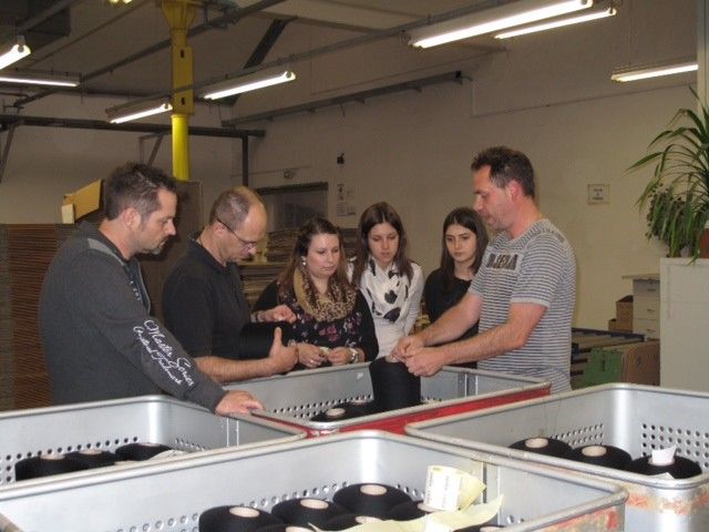 Aleyna Sali und Jovana Topic, Lehrlinge Textilchemie bei Schoeller Hard, lernten vor Kurzem auch die Abläufe in der Spinnerei von Schoeller Kresice in Tschechien kennen. Begleitet wurden sie auf ihrer Reise von Ausbilder Rolf Dibowski und der Personalleiterin Birgit Florineth. Foto: Schoeller