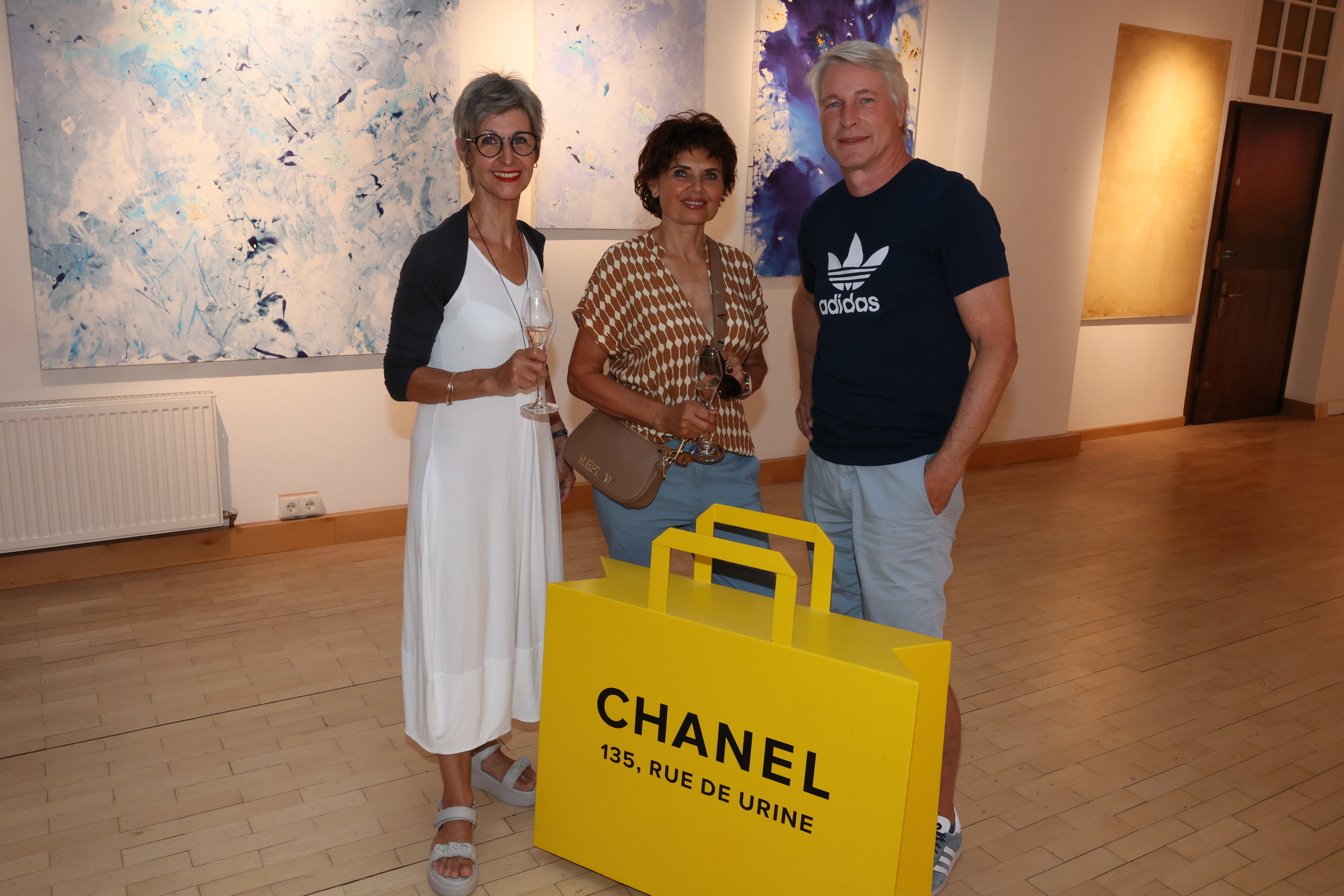 Erstmals zeigt das Ausnahme-Geschwisterpaar Martin und Teresa Grandits gemeinsam eine Auswahl ihrer Kunstwerke. In dem von Gerald Maier, Beat Schneider und Renato Walter („MWS Immo Grundstücksverwaltung“) vorübergehend bereitgestellten Erdgeschoss von „Neustadt 11“ sind aber auch von Galerist Christopher Lane mitgebrachte Arbeiten von Hermann Nitsch sowie Werke von dessen Schülerin Monika Kus-Picco zu sehen. Letztere verwendet zum Erstellen ihrer Bilder statt Farbpigmenten abgelaufene Medikamente. Kunstberaterin Ema Kaiser-Brandstätter begrüßte bei der Eröffnung der noch gut drei Wochen zugänglichen Ausstellung etliche Besucher. Natalie und Nicholas Zumtobel gehörten ebenso dazu wie die Künstler Cornelia Hefel, Yvette Heller, Gabriele Ulmer, Roland Adlassnigg und Marco Spitzar oder Thomas Häusle (Kunstraum Dornbirn). Auch Ortsvorsteherin Elisabeth Pucher, Bauunternehmer Wolfgang Nägele und Elisabeth, Martina Ess, Angelika Maier-Rottmar, Gerda Schnetzer-Sutterlüty, Siemens-Landesdirektor Paulus A. Vergeiner mit Christine sowie den Kindern Amadeus und Vitus-Paulus, Maria Steu und Michaela Rümmele (Maselli Loft) erlebten einen von DJane Tiziana bereicherten Abend.