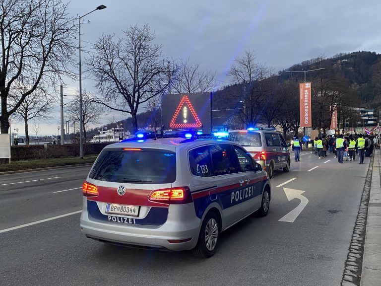 Davon kann ein Mann auf Höhe der Landespolizeidirektion ein Lied singen. “Impfa statt schimpfa”, verlangt sein Plakat. Näher darf er auf Weisung der Einsatzeinheit nicht hin, wegen Störung einer Versammlung. Am Donnerstag wurde er noch gegenüber der Bezirkshauptmannschaft geduldet. “Da wirst dann schon ungut angegangen. Einer nannte mich eine Reptiloiden, andere dass wir alle in fünf Jahren tot sind”, berichtet er. Von den anderen Verkehrsteilnehmern kämen nur positive Rückmeldungen. Und auch aus den Reihen der Polizei habe er schon Rückendeckung erfahren.