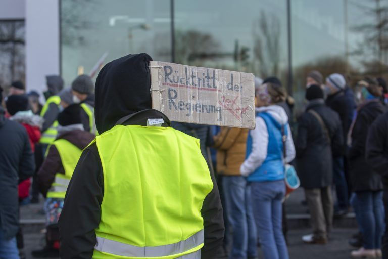 Doch auch Zaungäste schütteln immer wieder den Kopf. “Ich bin überrascht, dass es so wenige sind”, erklärt ein älterer Herr nahe der Rathausstraße. Es sei kein Vergleich zu den Samstagsdemos. Ihn interessierte, ob er unter den Teilnehmern jemanden kennt. Den Protesten kann er nichts abgewinnen. “Hier wird unsere Demokratie mit Füßen getreten”, klagt er. Immer wieder halten Radfahrer an, zeigen mit Hand- und Kopfzeichen ihr mangelndes Verständnis für den Protest. Andere filmen den Protestzug mit ihren Smartphones. Bei der Montfortstraße beobachten zwei Frauen die Demonstration. Sie wollten sich ein eigenes Bild von den Protesten machen, erklären sie. “Es scheint sich etwas verändert zu haben, viele tragen Masken”, bestätigt die Jüngere von beiden. Ihre Begleiterin ist ihre Mutter. “Für mich ist das schwer nachvollziehbar”, zeigt sie in Richtung des Protestzugs. Gegen die Impfung zu sein sei das eine, aber manche der Ideen der Impfgegner seien irritierend.