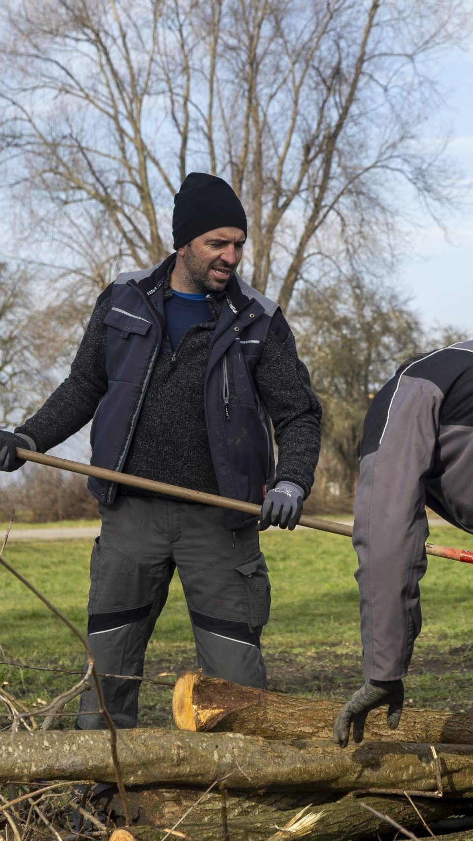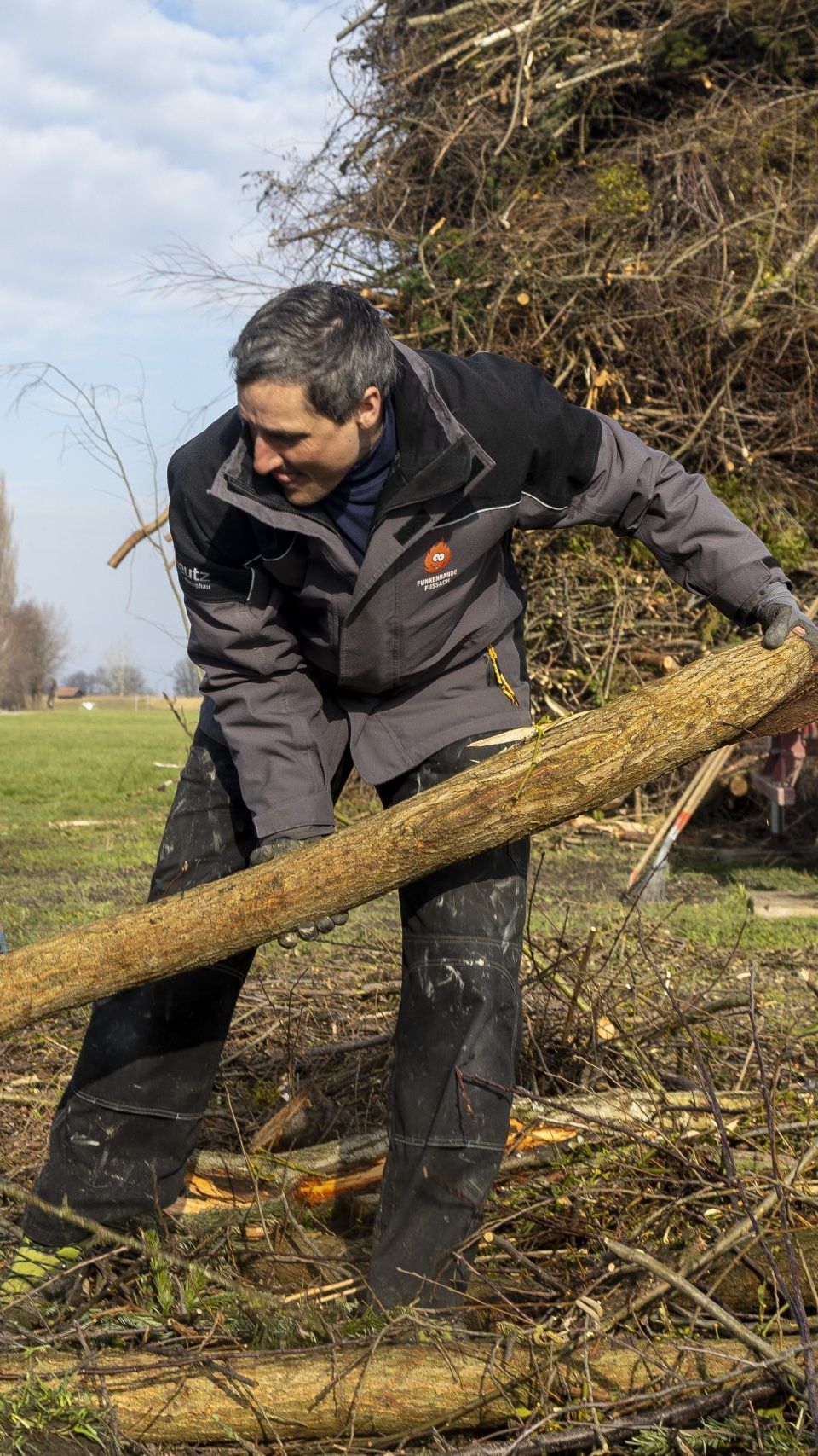 Oberster Funkenbauer ist Armin Türtscher (52). „Nach seiner Vorgabe wird der Funken gebaut“, unterstreicht Obmann Markus Müller. Türtscher ist seit 27 Jahren bei der Funkenbande und immer der letzte, der vom Funken geholt wird. „Dadurch, dass ich Zimmermann von Beruf bin, macht mir die Höhe nichts aus“, ergänzt er. Ganz unbeschadet geht der Funkenbau aber auch an einem Profi wir ihm nicht vorbei. „In den Ästen sinkst du halt ab und zu ein. Das ist so, als ob du die ganze Zeit im Schlamm läufst. Am Abend merkt man das schon“, sagt der 52-Jährige.