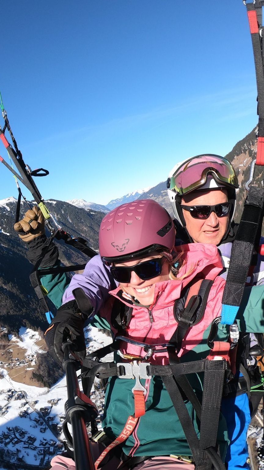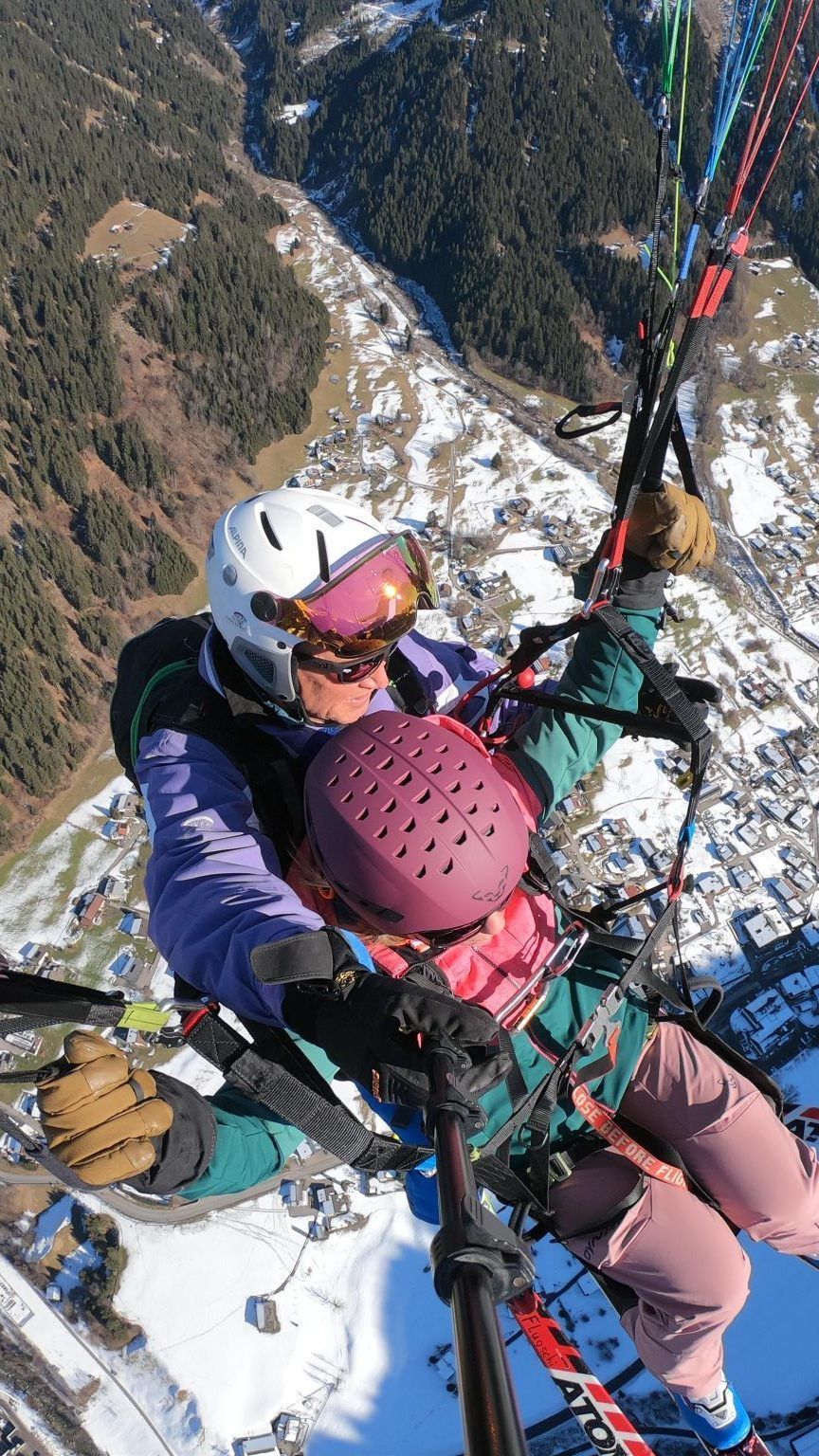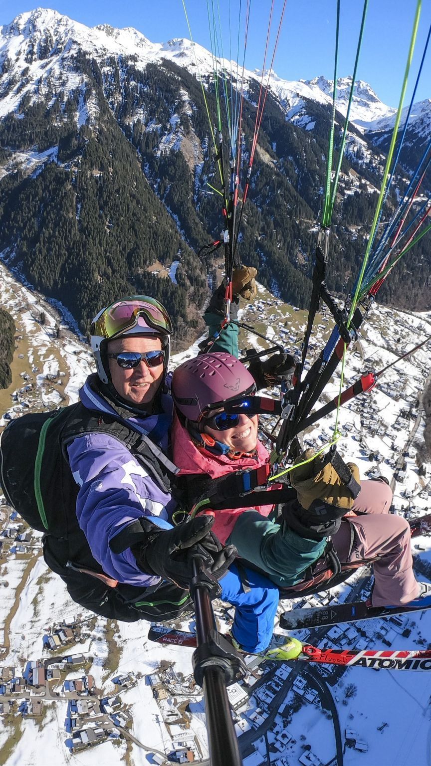 Doch mit den Skiern ist man nach wenigen Augenblicken in der Luft, wo die Nervosität auf einen Schlag nachlässt. Ich konnte den Flug voll und ganz genießen. Das Montafon lag mir zu Füßen. Die Landung war ebenfalls leichter als im Sommer, da man mit den Skiern sanft über die schneebedeckte Wiese gleiten kann. Und ich kann Werners Passion fürs Gleitschirmfliegen nachvollziehen: In der Luft spürt man die pure Freiheit.
