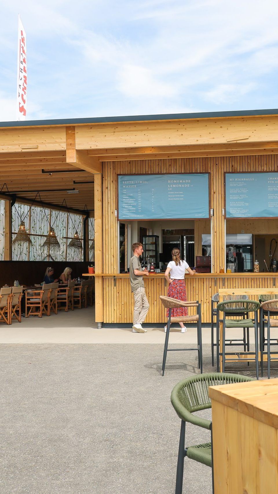 Das Strandhaus bietet auf über 1200 Quadratmetern Fläche Platz für rund 300 Gäste. “Der See wird durch die offene Gestaltung des Gebäudes und den großen Außenbereich in den Mittelpunkt gerückt”, erklärt Herburger. Materialien aus Holz sowie sommerliche Möbel und Deko-Objekte im Strandhaus-Stil sorgen für eine einladende Atmosphäre. Auch der Ort selbst spiegelt sich im “Heaven 7” wider, etwa durch eine Fotowand, die Einblick in die Geschichte der Bodenseegemeinde gibt. “Uns ist es wichtig, dass man bei uns auch den Ort spürt”, erzählt der gebürtige Harder.