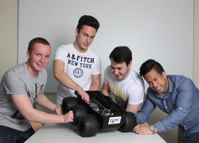 Wenn Menschen auf dem Mars landen, werden sie einen kleinen Begleitwagen brauchen, der Steine oder Sauerstoff für sie tragen kann. Schüler des TGM (Schule der Technik) in Wien bauen derzeit das Modell eines intelligenten Mars-Rovers, der einem Astronauten nachfahren kann. Der Mars-Rover „Curiosity“, der zurzeit den Roten Planeten erkundet, könnte das noch nicht, weil er sich zu langsam fortbewegt. Das Modell der Schüler soll drei bis fünf Stundenkilometer erreichen und über einen Bordcomputer mit automatischer Navigation verfügen. Den Auftrag erhielten sie vom Österreichischen Weltraumforum ÖWF. Foto: TGM